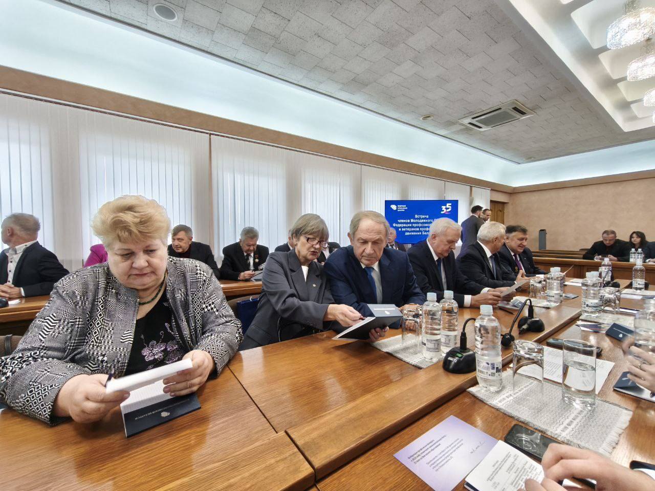 Сегодня наша большая профсоюзная семья празднует юбилей! В честь этого в штаб-квартире ФПБ прошла тёплая встреча молодежного актива с ветеранами профсоюзного движения.