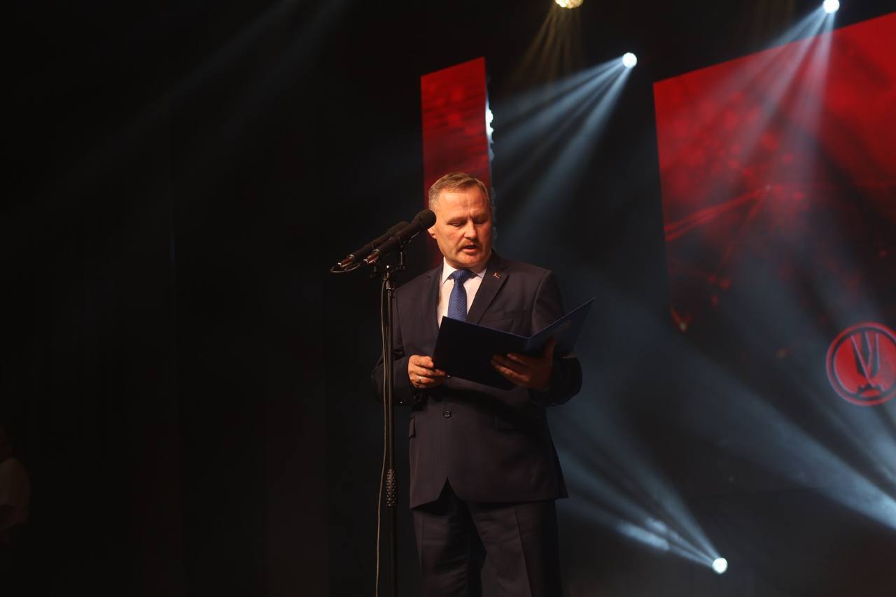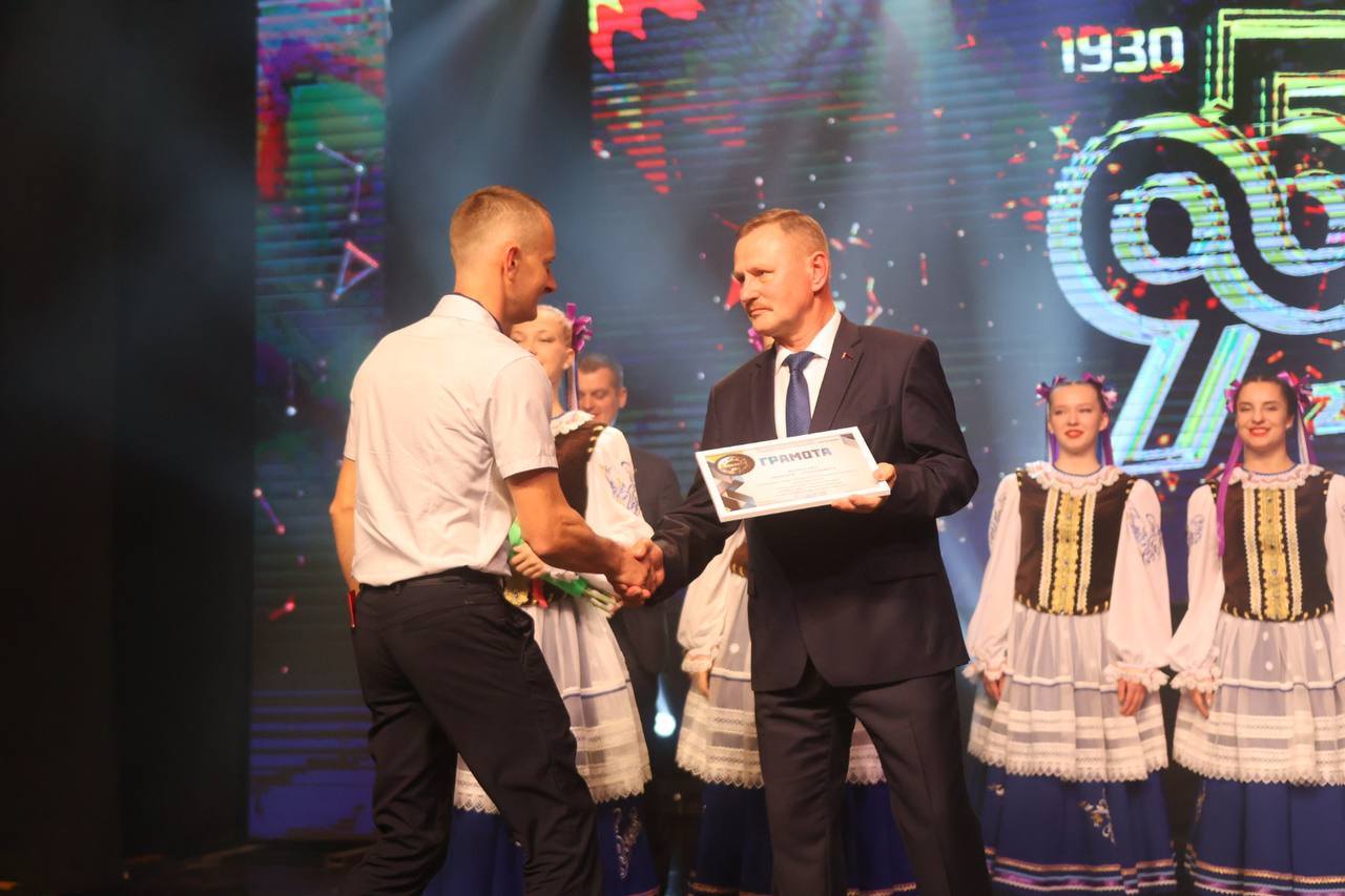 Награды со сцены вручил председатель Гомельской областной организации Белорусского профсоюза работников отраслей промышленности «БЕЛПРОФМАШ» Иван Швед.
