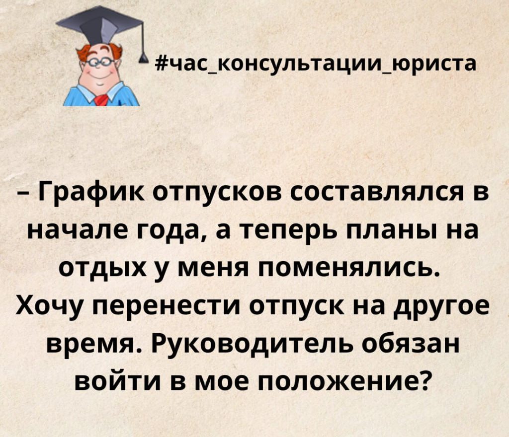 Отвечает профсоюзный юрист Марина Змитрович: – Не обязан. Наниматель вправе отказать работнику в переносе отпуска и даже не выплачивать денежную компенсацию за неиспользованный отпуск, если он предоставляется с соблюдением порядка, установленного трудовым законодательством. Однако при увольнении работнику, который не использовал трудовой отпуск или использовал его не полностью, денежную компенсацию необходимо будет все-таки выплатить (ст.173 ТК).