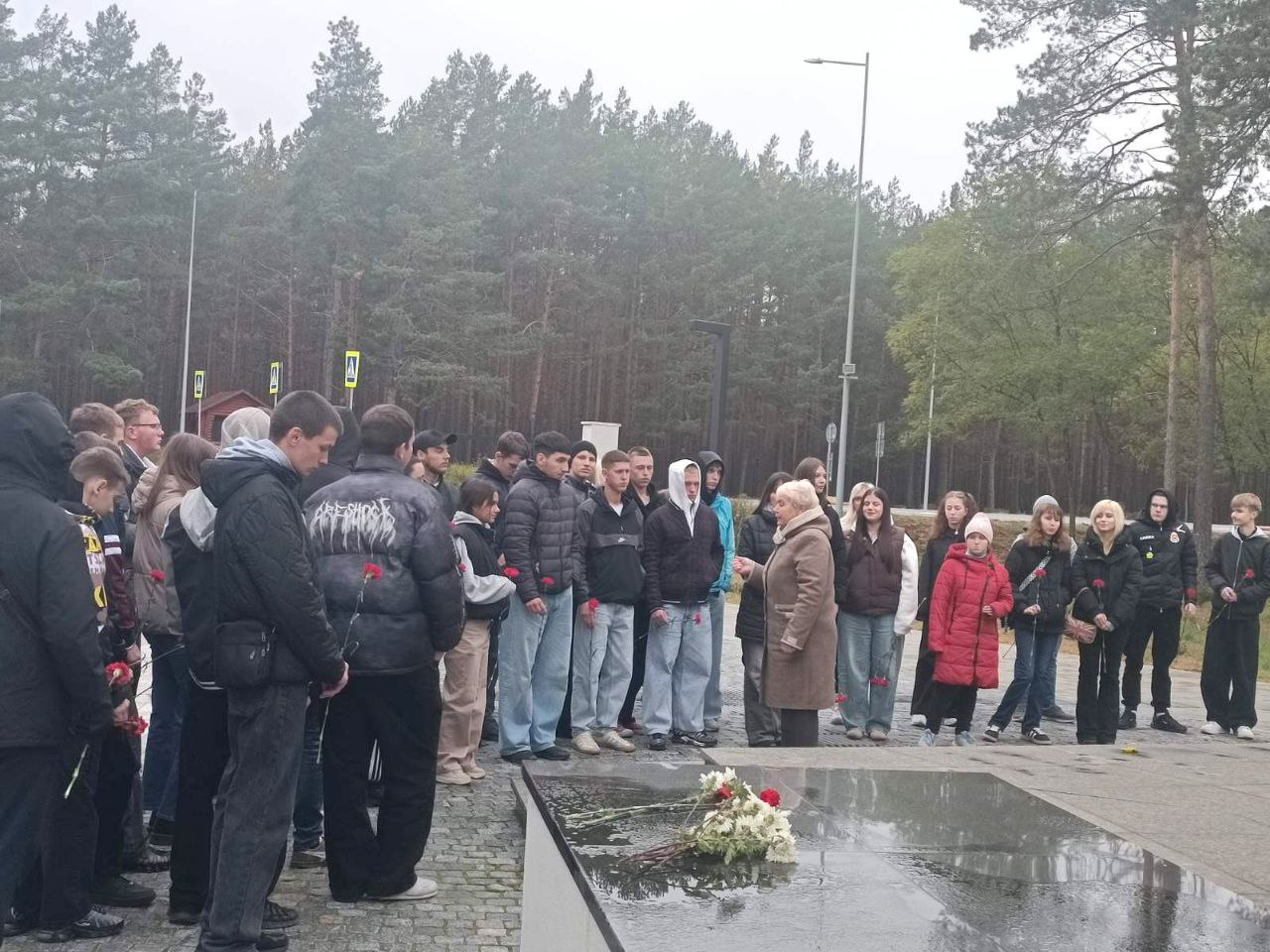 Участники поездки возложили цветы к мемориалу и почтили память погибших минутой молчания.