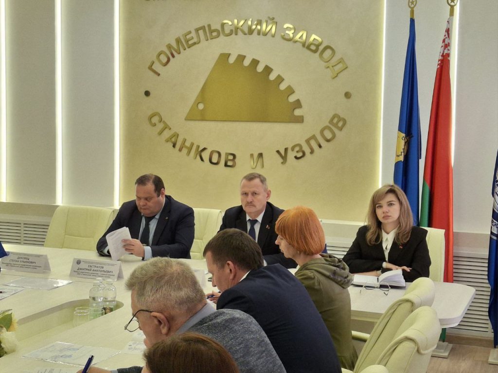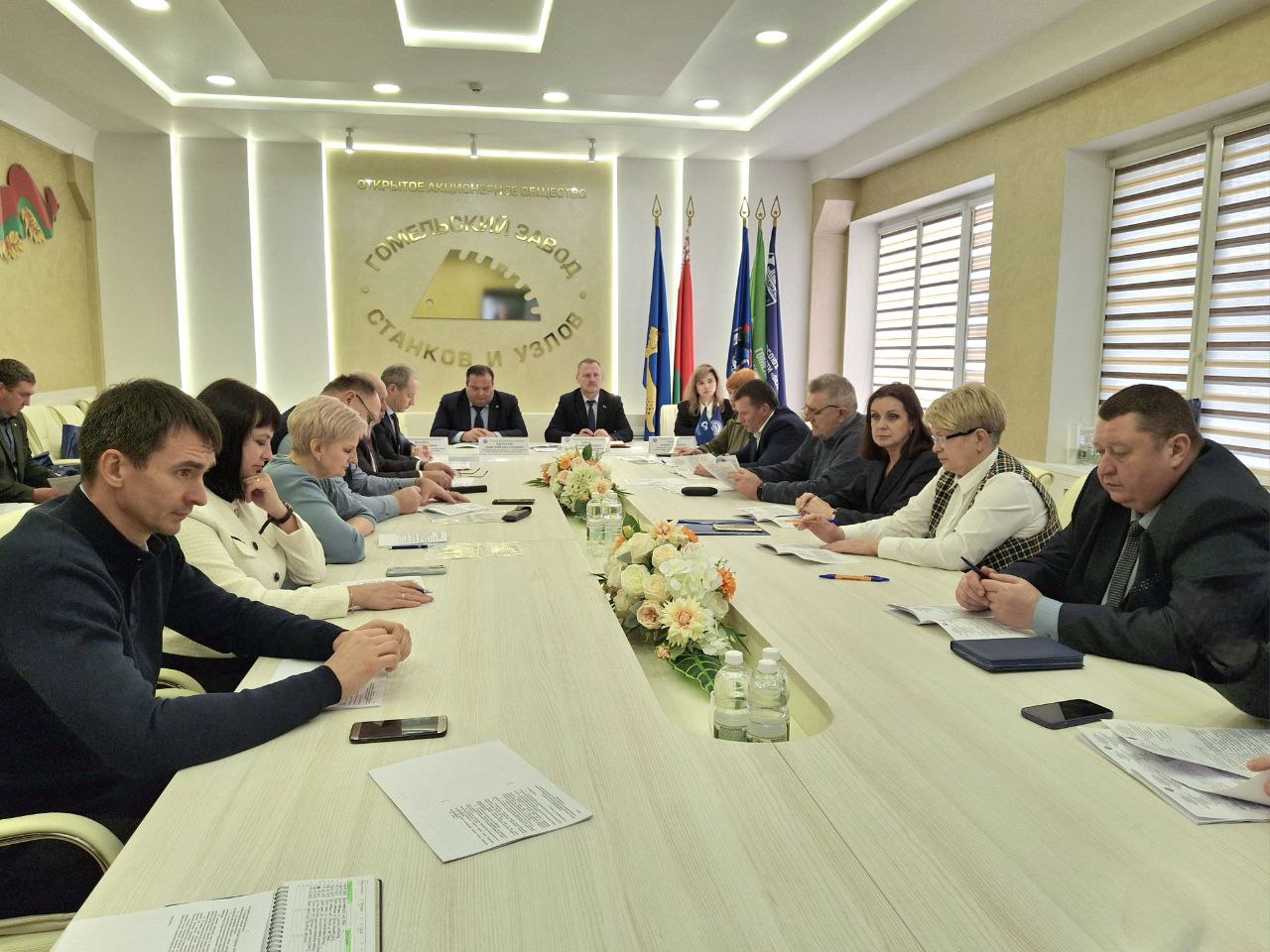 Зал заседаний ОАО «Гомельский завод станков и узлов» стал площадкой для рабочего заседания президиума Гомельской областной организации Профсоюза «БЕЛПРОФМАШ». К обсуждению широкого спектра профсоюзных направлений присоединился в онлайн-режиме заместитель председателя Профсоюза «БЕЛПРОФМАШ» Михаил Костян.