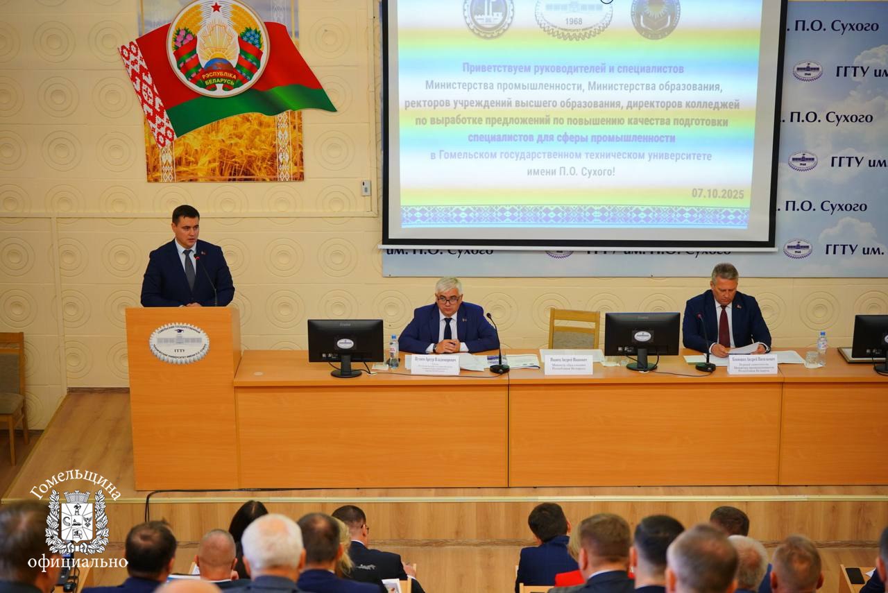 В Гомеле обсудили качество подготовки инженерных кадров. Встреча руководителей промышленных предприятий, ректоров вузов и колледжей страны с министром образования Беларуси Андреем Иванцом и первым заместителем министра промышленности Андреем Конюшко прошла на базе ГГТУ имени П. О. Сухого.